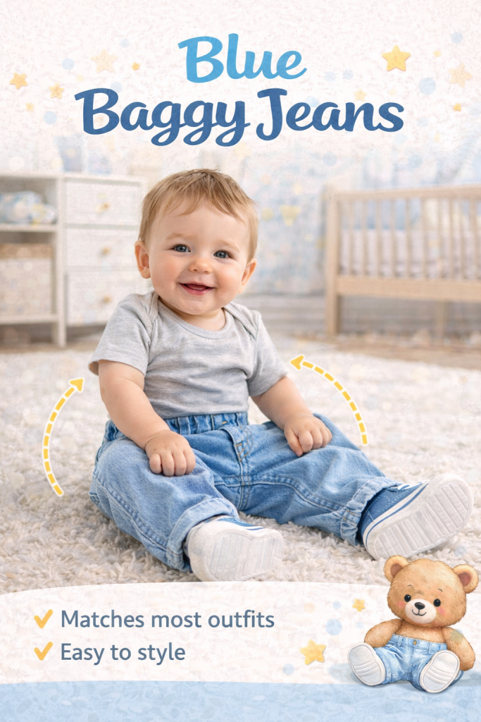 Little outfits can be cute, yet comfort matters even more for babies. That is why many parents choose baggy jeans for baby boys. The loose shape gives babies space to move, crawl, and play without feeling restricted.